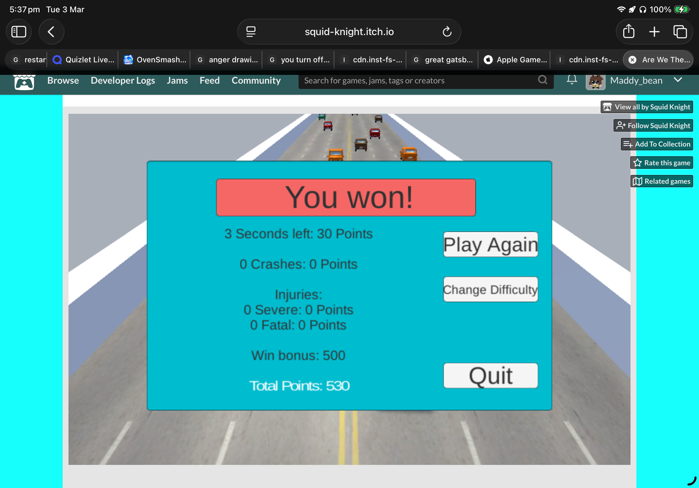 This game was really fun to play and I thought the physics in particular (like when the vehicles you crash into random fly off the map too. I love little games like this!